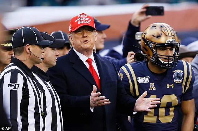 The referee said before the toss it was with ‘great pride, great honor, to welcome our Commander in Chief, our President of the United States, Donald J. Trump. Mr. President, thank you for all that you do.’