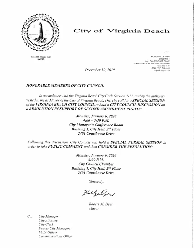 In addition to declaring the city a “Second Amendment Constitutional City,” but not a “Sanctuary City,” the proposed resolution would also show the council’s support for “other elected bodies making similar declarations on behalf of Virginia counties, cities, and towns.”