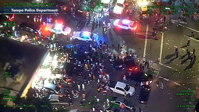 According to Dugan, the mob surrounded officers, threw bottles and glass, and jumped on a police vehicle. Officers could not locate a victim.