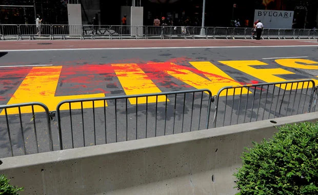 President Trump said in tweets before the mural was painted that de Blasio “is going to paint a big, expensive, yellow Black Lives Matter sign on Fifth Avenue, denigrating this luxury Avenue,” and he predicted that doing so would “further antagonize” the New York Police Department, which, he said, “vividly” remembers the “horrible BLM chant, ‘Pigs in A Blanket, Fry ‘Em Like Bacon.'”