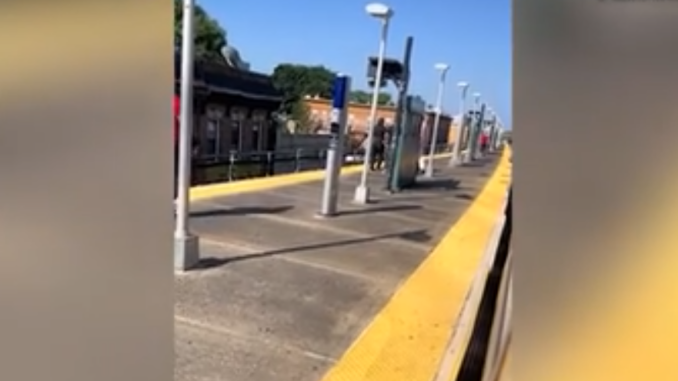 A group of everyday New York City subway riders delivered some street justice to a crazed man who randomly grabbed a screaming woman on a platform and ushered her forward, dramatic viral video shows. (@nicabori5 via TikTok)