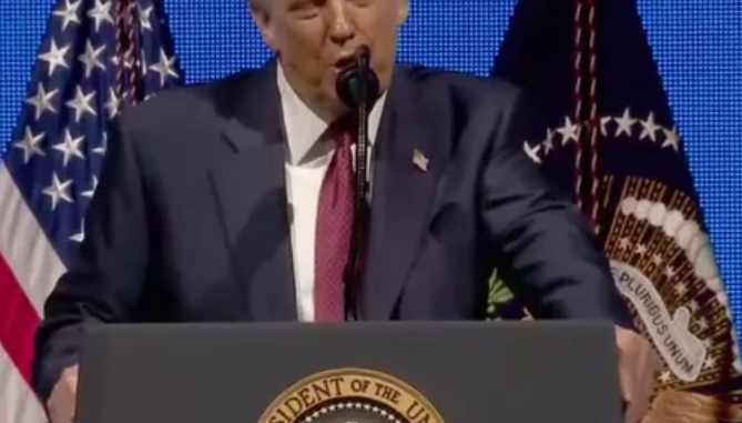 Speaking at the America Business Forum in Miami, Trump took a swipe at trans athletes, claiming that “men” competing in “women’s sports” is “over.” He did, however, say that a “man” won “one of those all-day races” by five hours and 18 seconds “the other day.”